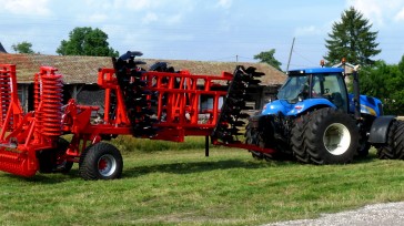- Причіпна дискова борона з шасі в хвостовій частині і 2-ма колесами 550/60 х 22,5 у хвостовій частині