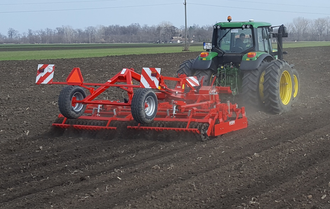A legelső sorban a tavalyi évtől elérhető cserélhető kopórészű, csipkézett simító is. A csipkézett kialakítás elősegíti a heterogén hantelmunkálást és megkönnyíti a durvább szántáson is a precíz munkát. Az elmunkáló elemeken túl a gép munkáját rugós biztosítású traktorkerék nyomlazítók segítik, amelyek helyzete és intenzitása könnyen beállítható minden traktortípushoz.